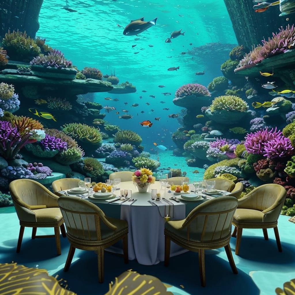 — Подводный ресторан *Ithaa*. Здесь, на глубине 5 метров, мы будем обедать в окружении коралловых садов и стай разноцветных рыб. Шеф-повар приготовит лангустинов с трюфелем, а сомелььье не только подберёт вино но и нальёт нам его , которое звучит как музыка.